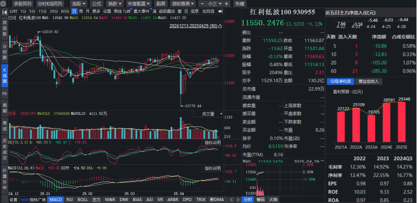 随着五一长假临近,A股市场似乎进入了平淡期,整体呈现缩量、横盘震荡的态势。回顾整个4月,在美国对等关税以及上市公司业绩披露等多重因素的交织影响下,市场风格逐渐向红利板块倾斜,四大行等部分股票还创出了新高。而从宏观层面来看,随着国债收益率的进一步走低,降准降息预期也在不断增强,资金也开启了新一轮抱团红利的迹象。 今天早盘港股$港股红利ETF博时(SH513690)$下跌0.65%,$红利低波100ETF(SZ159307)$...