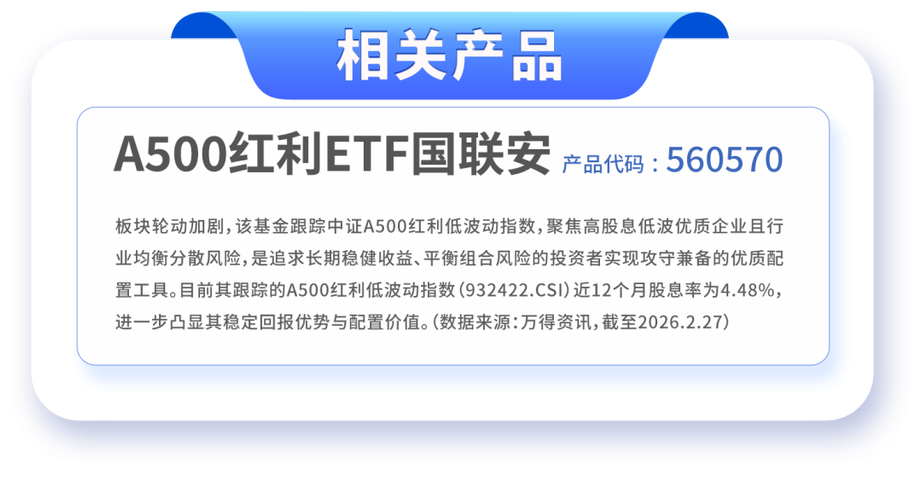 投资不仅是关于增长的故事,更是关于风险管理的艺术。在AI革命引领的科技浪潮之外,为投资者的资产组合配置一份能够平滑波动、提供持续现金流的“稳定器”,同样至关重要,且正当其时。 因此近两年来,兼具稳健低波与分红预期的低波红利策略脱颖而出,成为市场配置新宠,而A500红利ETF国联安(560570)正是这一赛道的优质标杆。 近日A500红利ETF正式更名A500红利ETF国联安(560570),此次更...