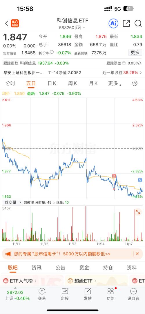 $科创信息ETF(SH588260)$跌下来,尾盘我买一点