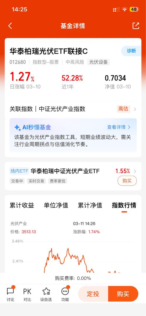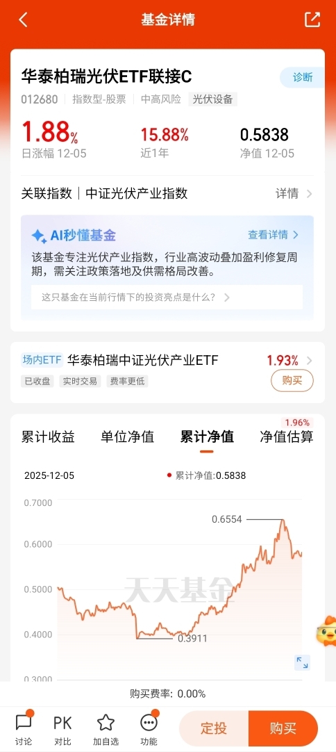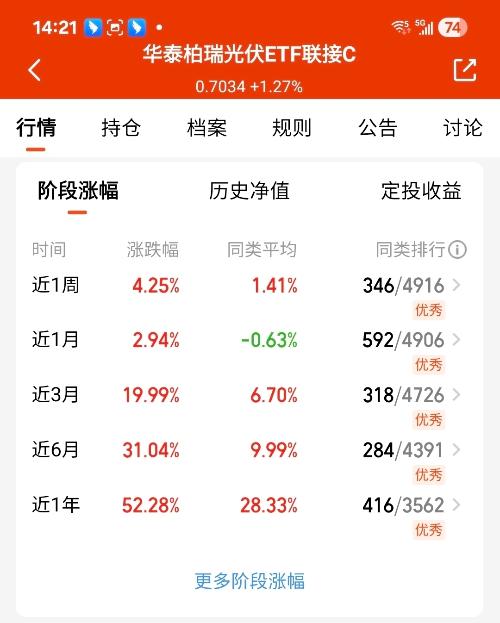 看透了内卷的苦,转头关注光伏这个宝藏赛道——产能出清后行业环境变好,下游需求也在稳步增长,基本面越来越稳。我打算把一部分闲钱投华泰柏瑞,既能分享行业复苏的红利,又因为是分散布局,风险相对可控,适合长期拿着。 $华泰柏瑞光伏ETF联接C$#低估补涨号启航#