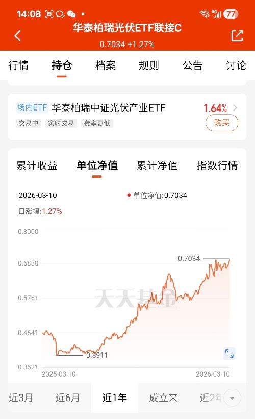 今天光伏走势强劲,成为市场亮点,个股普涨、赚钱效应回升。行业反内卷成效突出,供给收缩、需求回暖,基本面全面向好。不折腾不内卷,淡定持有胜过频繁交易,我打算布局华泰柏瑞跟上节奏。 #3月基金投资策略#$华泰柏瑞光伏ETF联接C$
