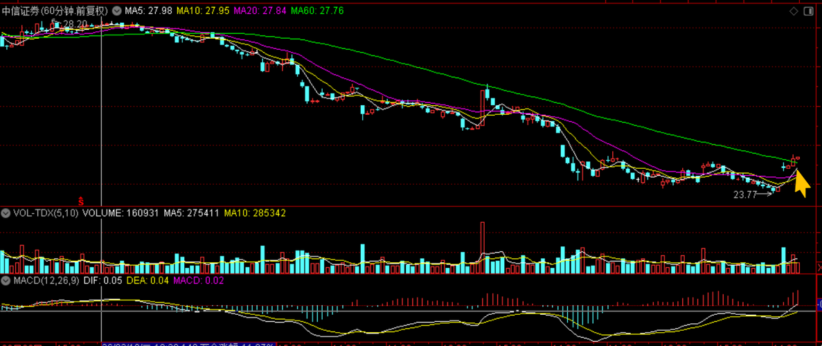 $中信证券(SH600030)$今天盘前预案打算界入中信证券,如何操作?很多朋友担心的是它会不会回补24.08这缺口,我们认为短期不太可能,曹盘策略上盘中分时反弹点低吸,可以分几次平均一下成本。我们正常预期它已现见底形态。技术上,MACD底部钝化后金叉见底反弹,连续碟7周后,本周有望周阳线反弹,打开中级别反弹的序幕。月线去年4月份23.23元这个位置有强支撑,它至少是个大箱体的支撑,60分钟线突破...