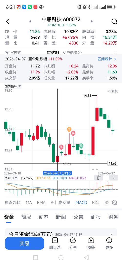 $中船科技(SH600072)$在等一季报出来再跌至12.60元吗