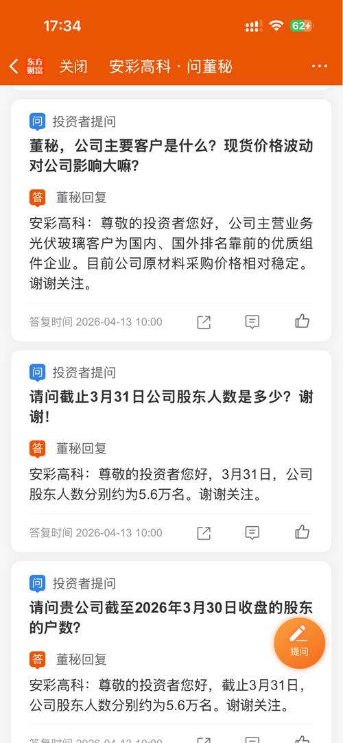 资讯 安彩高科:截至3月31日公司股东人数约为5.6万户