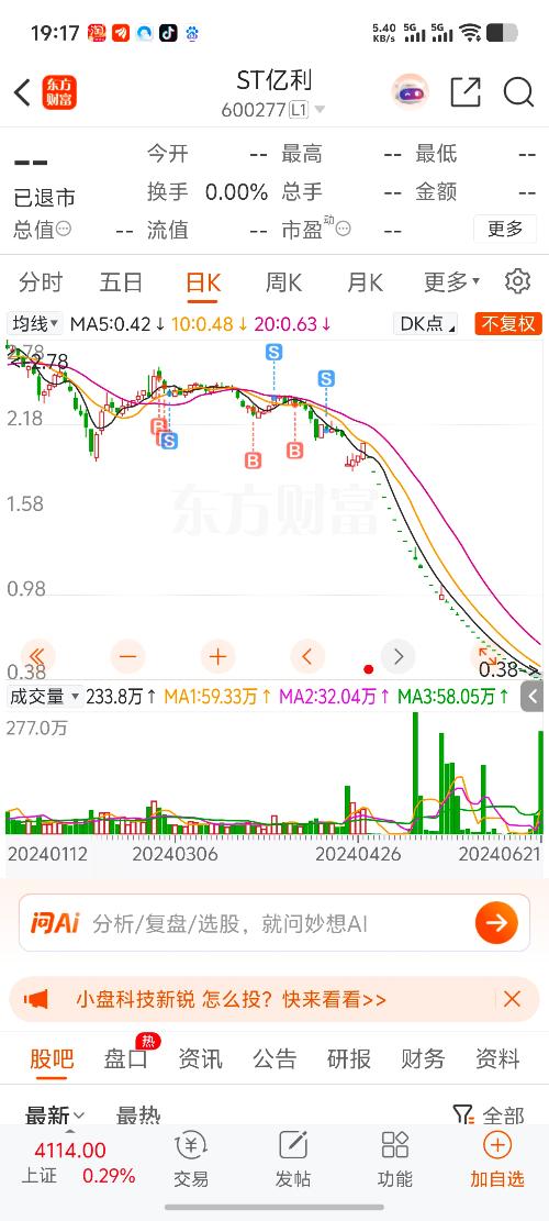 ST亿利在2024年7月12日发布了《关于股票终止上市暨摘牌的公告》。过去,ST亿利在2024年5月18日发布了《关于上海证券交易所〈关于亿利洁能业绩预告更正事项的问询函〉的回复公告》,引发了投资者索赔,而ST亿利摘牌不影响索赔。现符合以下区间的投资者可参与报名索赔:于2017年4月18日-2024年4月23日期间买入,并在2024年4月24日之后卖出或仍持有而亏损。适合投资者可以在东财搜索维权平...