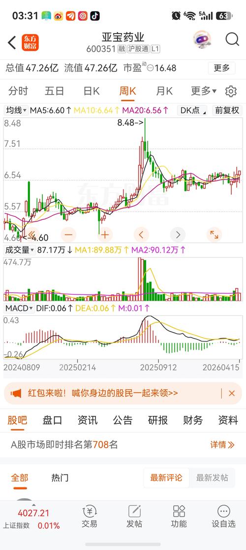 $亚宝药业(SH600351)$亚宝年报业绩预估0.30,如果年报分红每10股送2元,宝股价也能站上7元大关。是个低价绩优股,只是医药板块不在风口,公司也不想维护市值,更没有大机构游资看好亚宝所以6.5-7.0之间震荡就是常态做波段,赚点差价