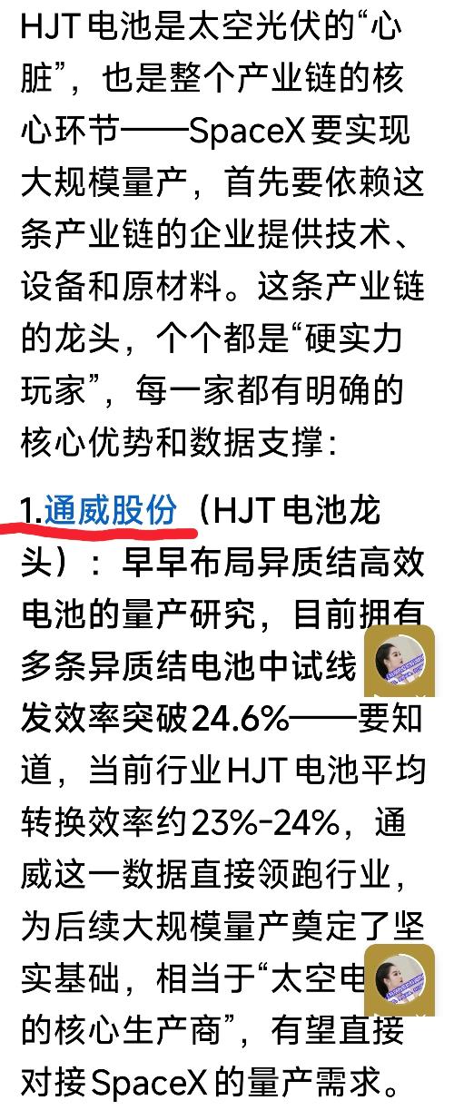 $通威股份(SH600438)$有人在推荐通威股份:HJT技术锁定太空光伏唯一路线,万亿赛道拐点彻底来临。