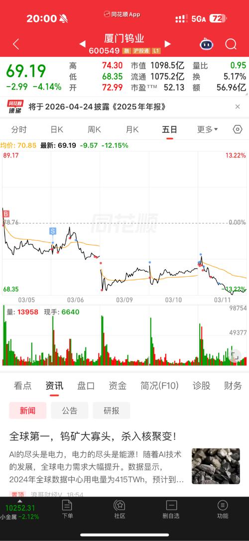 $厦门钨业(SH600549)$今天这个不错