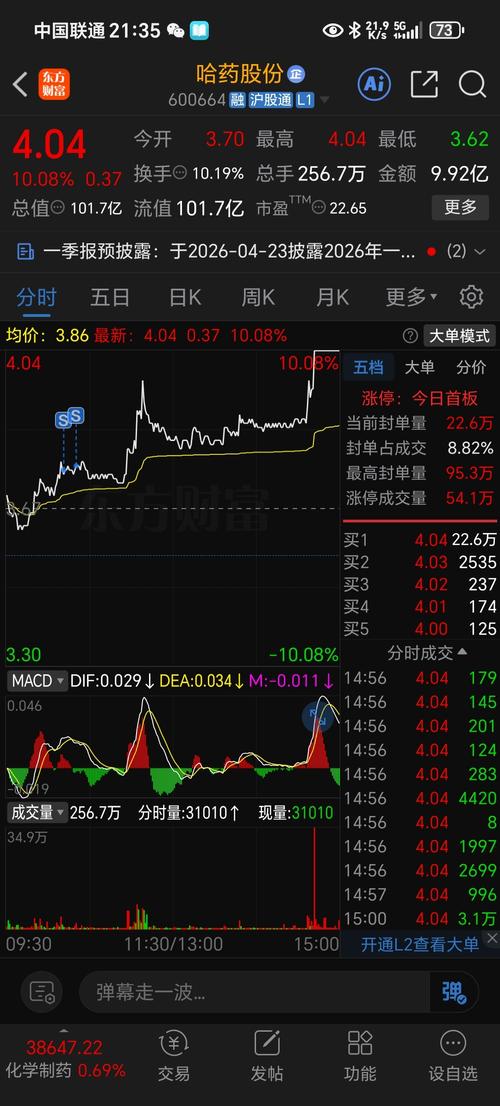 $哈药股份(SH600664)$ 这支票从上周二首板开始关注,今天盯盘盯了它整整一天,仅仅通过观察成交明细,频繁的数万手跳吃扫货,自然回落继续吸筹,主力意图太明显了,后市大有可为。