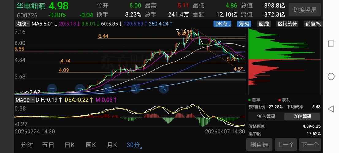 $华电能源(SH600726)$#炒股日记#见顶7.16开始下跌,今天首次没有下打下方支撑位4.67