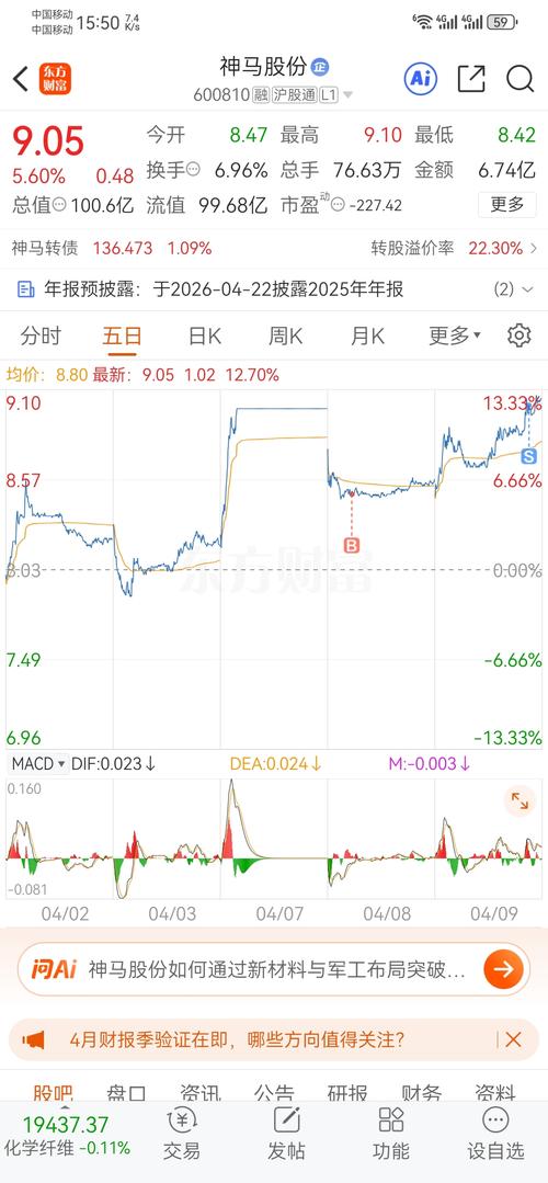 $神马股份(SH600810)$卖飞了,求你了,明天回踩8.82买回来。