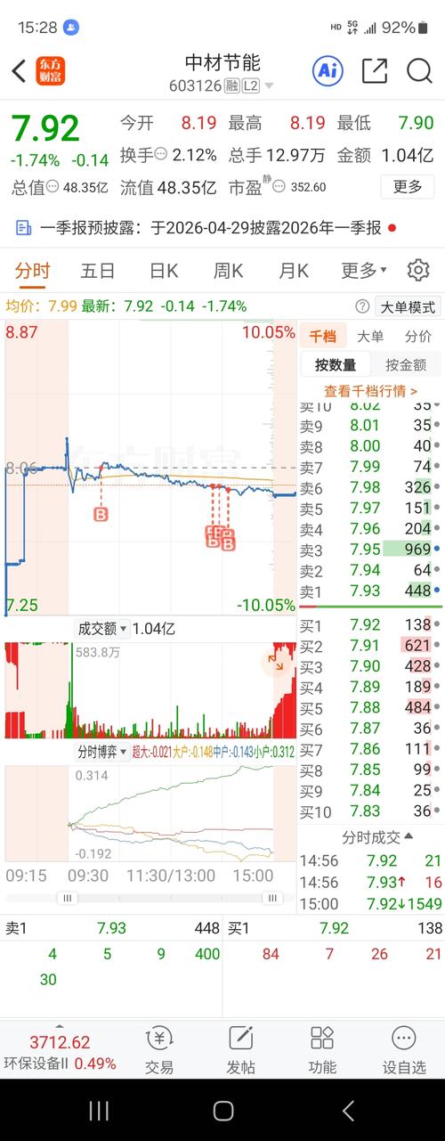 资讯 中材节能:融资净偿还640.04万元,融资余额1.06亿元