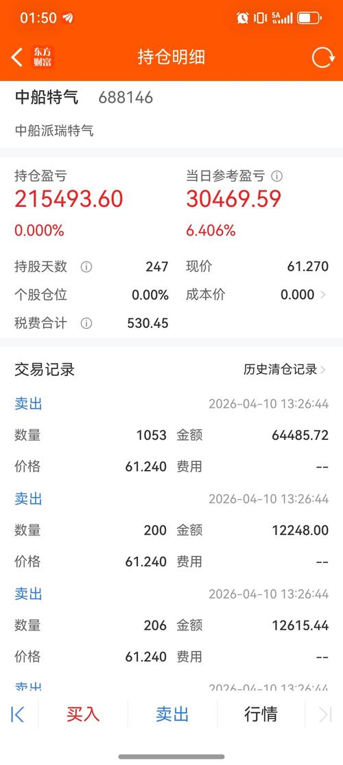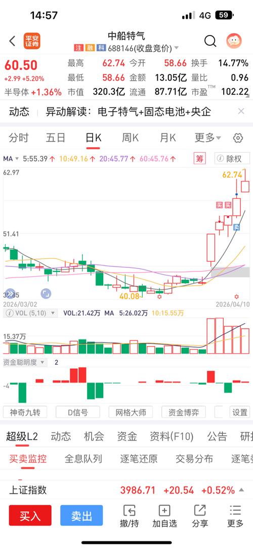 今天卖掉大涨7%以上的弱股52.33均价低吸一点中船特气,现在54.10