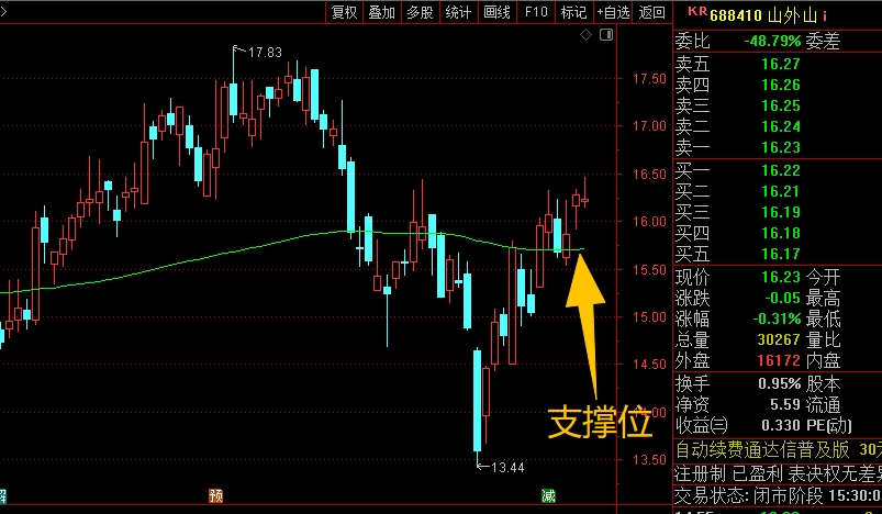 $山外山(SH688410)$近期趋势的反弹趋势走得不错,连续的震荡拉升起来,幅度比较可观,短线来看,重点是观察脚底大均线位置15.71的支撑情况,能稳住就比较漂亮,继续震荡看涨;但如果有效跌破就要注意回调的动作了,需要控制好仓位应对,前面有低吸的仓位可以高抛止盈,不用纠结。