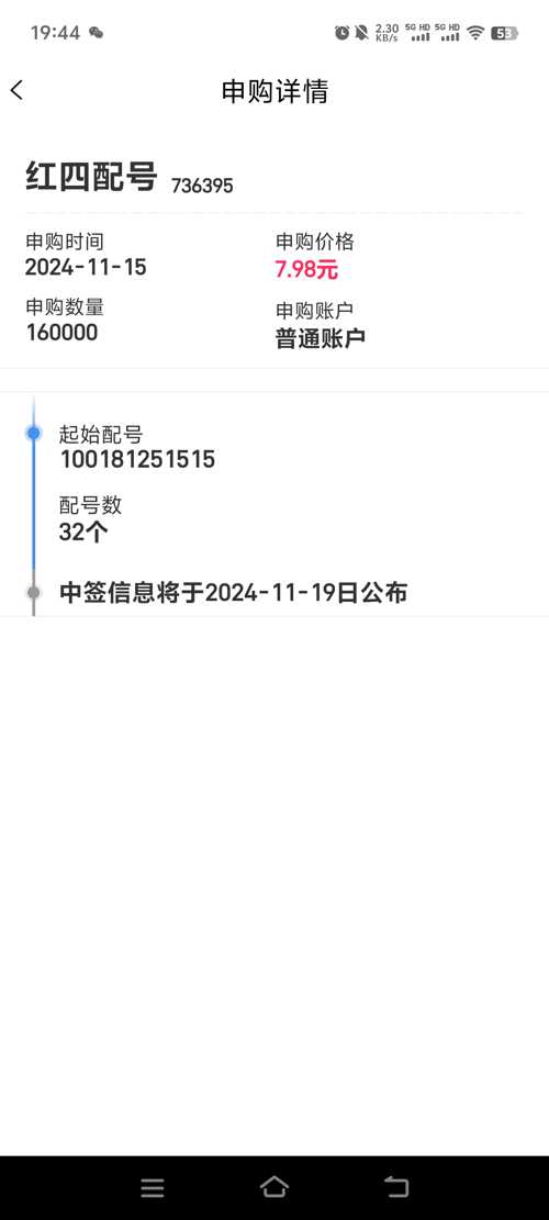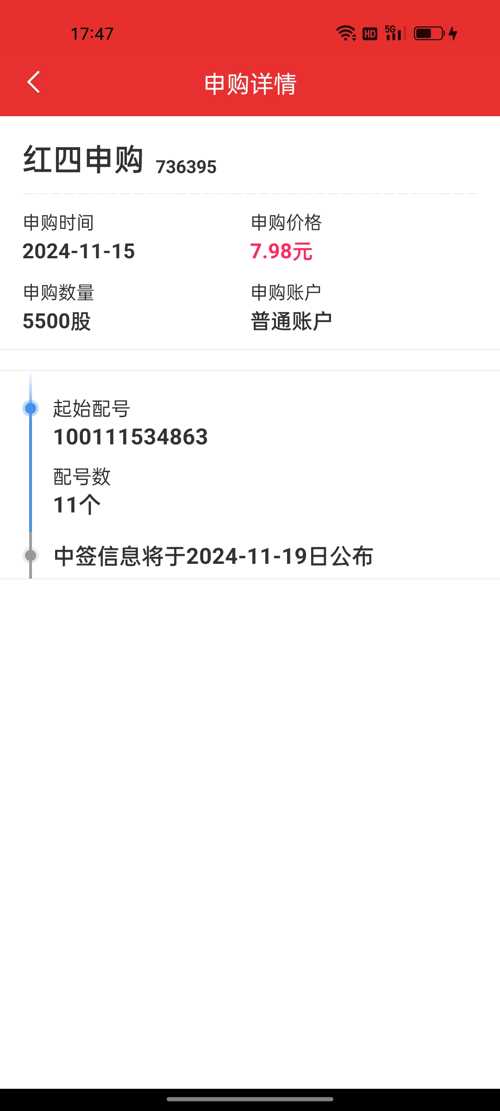 $红四配号(SH736395)$中签结果出来了吗