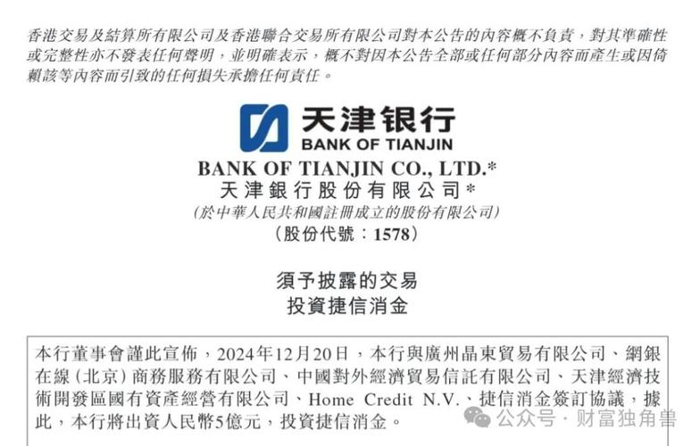 全部 热门 最新评论 最新发帖 全部 全部 个人号 机构号 财富独角兽 更新于 2025-03-31 15:02 757次浏览 天津银行个人消费贷余额五连降,入股捷信能否成为突破口? 文|小方 来源|财富独角兽 $天津银行(HK|01578)$$天津银行(SH751214)$$天津银行(SH751402)$ 3月20日,天津银行发布了其2024年度业绩报告。报告显示,截至2024年末,天津银行资产规模为9259.9亿元,同比增长10.1%;实现营收167.1亿元,同比增长1.5%;归母净利润约38亿元,同比增长1.1%。 而通过其2019年至2024年年度报告对比可知,天津银行... 分享 1 赞 股友216912av16 :津行消贷降,捷信京东强,风控创新望 发帖 APP内打开
