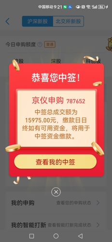 $京仪申购(SH787652)$今年第二签,希望不会破发