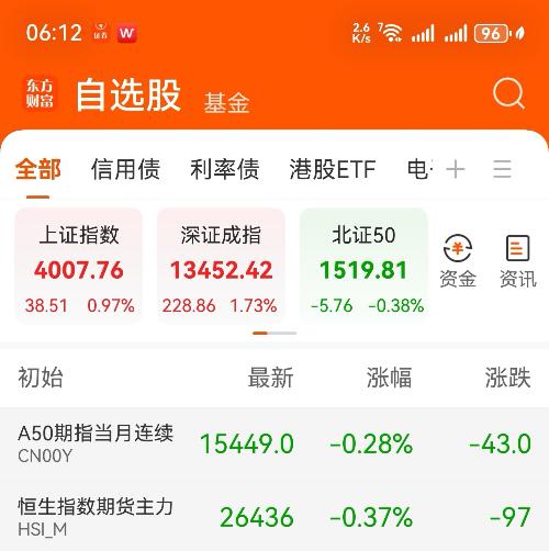 在今天早上,观察某50期货、恒生主力期货,这两个股指期货在也是跌了。