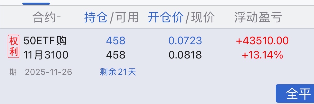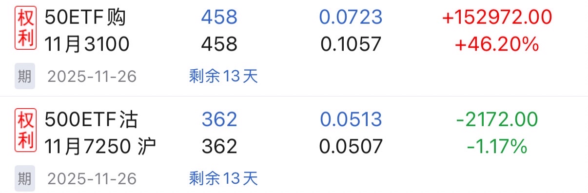$50ETF购11月3200(SO10010070)$准备转战上正50的多