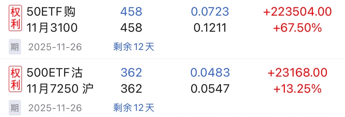 $500ETF沽11月7750(SO10010115)$我炒了六年期权,损失160万。股票赚点钱都还给它了。现在可以买卖26万,持仓10010115认沽20张。周一是加还是平,希望朋友给你建议