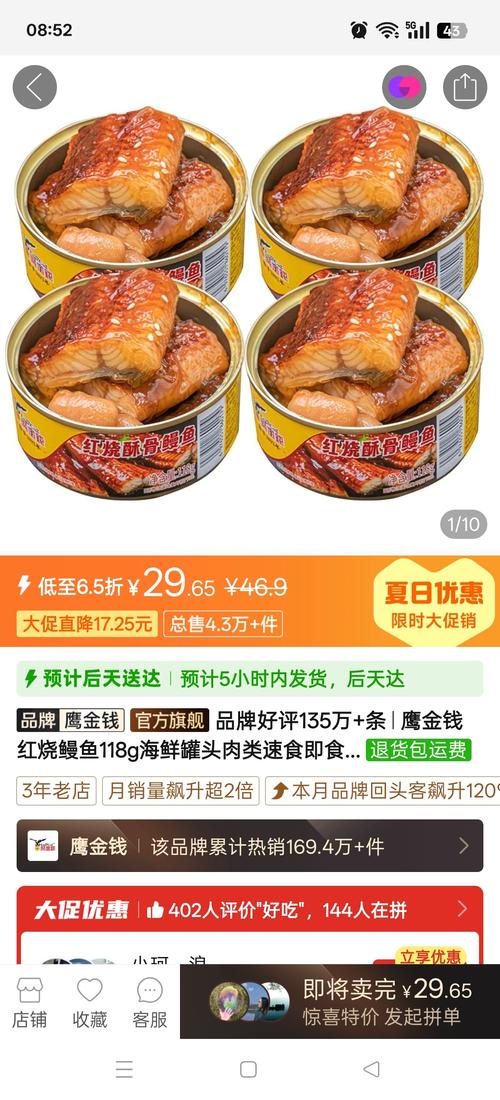 $红棉股份(SZ000523)$拼多多销量很好啊,有前景的公司为啥走成这个熊样?大家没事多支持下虎头鹰罐头鱼