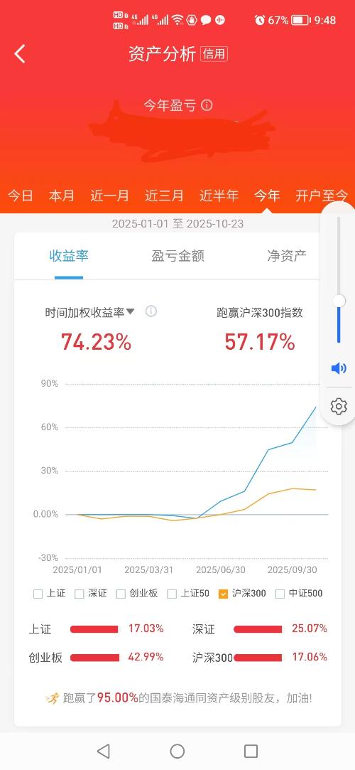 今天晒一张今年收益图,目的是鼓舞大家的信心,在国家的政策的引领下,只要你拥抱国家,长线投资,必然会有财富的增长!金额信息叙事不公布,毕竟是修士的个人隐私!但可以说明的事修士账户的股票持仓的最少时间都是两年!而且都是低位埋伏,拥抱国企、拥抱红利、拥抱成长!