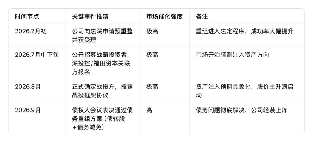 346- 现在算这个账最多看除权后股价多少,这个确实可以研究下,做个尽量准确的参考项。 但是,想要除权之前就涨跌多少,不现实的。 除权前股价多少,债权人没有资格也没有本事在意或者影响,因为已经谈好了转股价5,至于时间,猜去吧(不是嘲讽,是我们都不可能知道他们谈的结果)。 还是以大集做例子,刚好华闻跟大集还是能扯上点关系的(没记错财投里有牵扯) 大集战投价0.55,财投价在1出头跟1.5好像记不清了,债转股价是4,你可以去看下大集是什么时候拉倒4+用了多久,有一点不同是大集在这个阶段没有除权,是直接从破产账户里买的(海航的事儿牵扯太大、时间也久应该是前面除权过了)。 华闻比大集强的是,没有那么多大小窟窿要填、各方势力要平衡,所以大概率用不了那么久,还有高科技预期。 都熟人了,说点浪的,既然债转股的价钱定好了,基本上会到,什么时候到说不准,但一定会去。