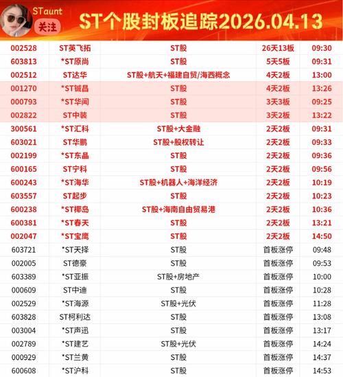ST个股封板追踪B