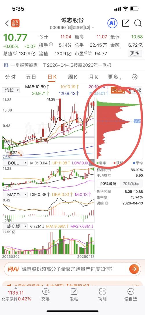MACDDIFF在高位,也就是短期超买状态;不能长期持股肯定是有问题的;下跌缩量大概35%,有反包的潜力;朗子现在和美丽矛盾又开始了,全球化工又开始涨价,这个板块没有问题,前期热门股。坐等反包