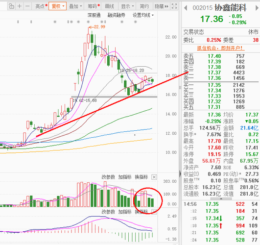 晚间话协鑫能科:今日回顾与明日展望 今日回顾:17.60元开,最高17.70元,最低17.15元,收盘17.36元,涨跌幅-0.29%,振幅3.16%,运行区间17.15-17.70元。全天成交量124.6万手,成交额21.64亿,换手率7.67%,量比0.72,资金活跃度回落;委比0.25%,买盘占优,内盘67.95万手,外盘56.61万手。所属新能源板块今日整体震荡,协鑫能科走势弱于板块,受能...