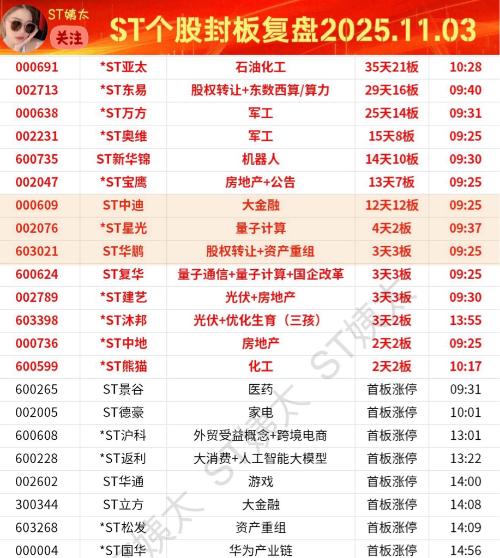 $ST中迪(SZ000609)$ $*ST星光(SZ002076)$ $ST华鹏(SH603021)$