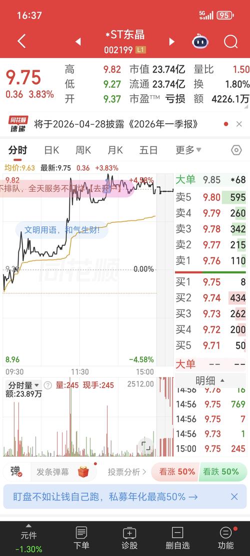 $*ST东晶(SZ002199)$ 前几天重新进场今天减仓6000股
