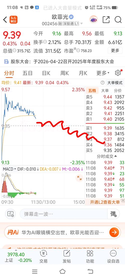 大盘3975时,欧菲光股价9.55;现在大盘3987点,欧菲光宜比价几何?