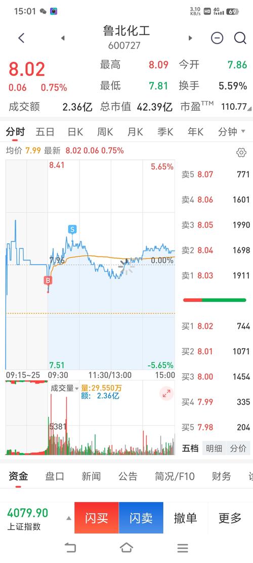 $二六三(SZ002467)$$鲁北化工(SH600727)$$山东海化(SZ000822)$ 一、鲁北化工(600727) 1.盘面表现:今日平开高走后维持震荡态势,开盘7.86元,最高触及8.09元,最低下探7.81元,收盘8.02元,涨幅0.75%,全天成交额2.36亿,换手率5.59%,整体走势稳健,股价持续运行于分时均价线上方,多头承接力度较好。 2.操作复盘:早盘低点精准买入,冲高阶段...