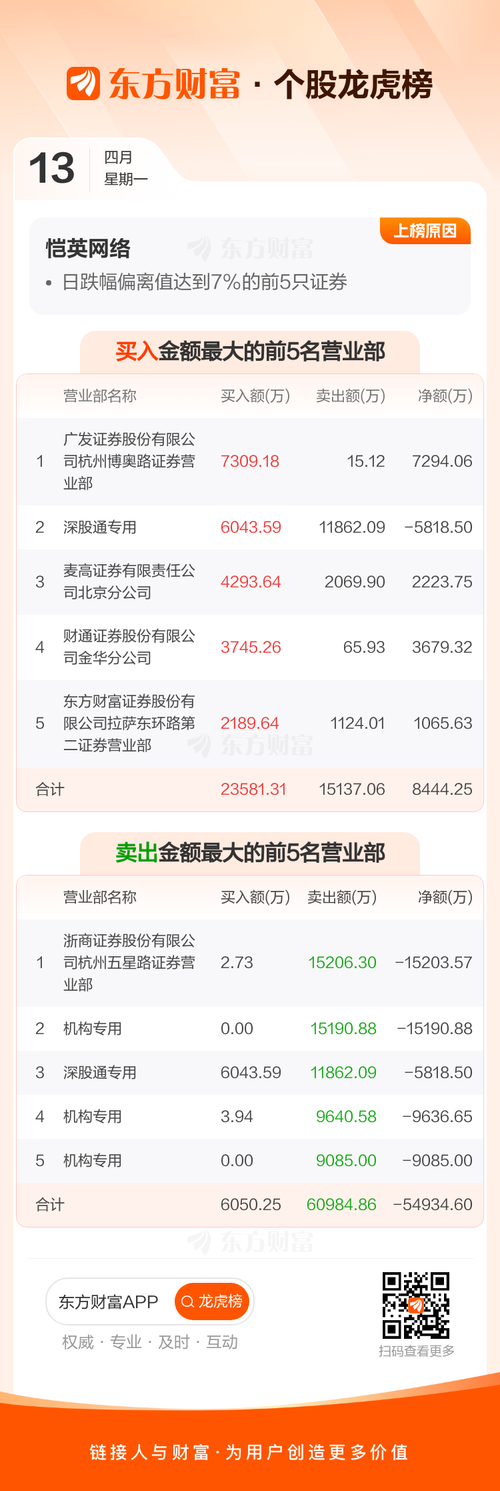 资讯 恺英网络(002517)龙虎榜数据(04-13)