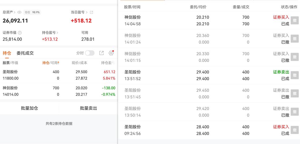 今日持仓如下: 早上竞价加仓圣阳,本来想撤单的,感觉还有低点,一开盘就进去了