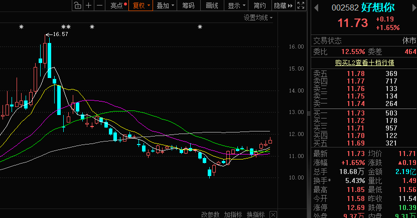 $好想你(SZ002582)$今天能上11.85-11.9