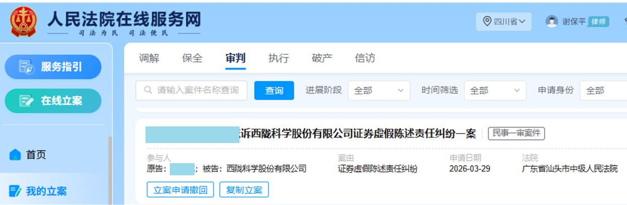 $西陇科学(SZ002584)$西陇科学(002584)股民索赔征集,索赔条件:2021年4月29日至2023年4月28日之间买入002584西陇科学,且在2023年4月29日(含当日)之后卖出或继续持有者,股民索赔时效截止日期:2026/04/28。符合条件的投资者请速度网查:谢保平律师,联系锁定索赔资格!风险代理,不获赔不收费。诉讼时效有限,切勿错失追偿良机。