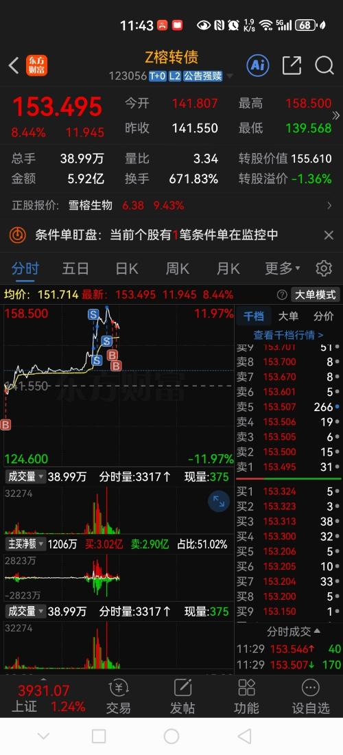$Z榕转债(SZ123056)$144.1买入。$雪榕生物(SZ300511)$