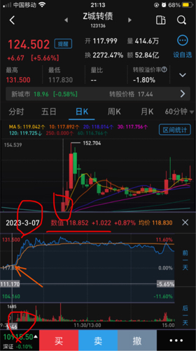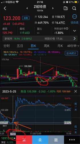 $Z城转债(SZ123136)$落幕了,从第一次我发现城市有启动迹象前提醒,我是先提醒再自己买入。当时价格比我的还低!2万多人见证,做了5.6波,几乎每一次都在底点买入提醒,高抛卖出,我把当时的分时图跟k线图复盘给你们看,注意时间精确到分秒!