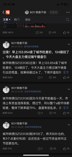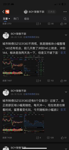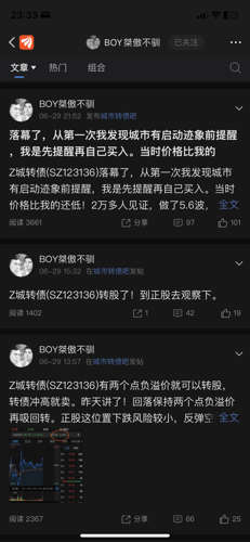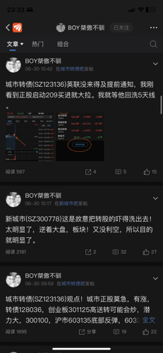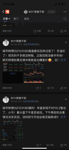 - @不要名字了 2.8万粉丝的boy哥牛逼哦,新城市正股涨起来了,之前137元买城市转债的如果能熬过三四十个点的亏损,拿到今天,就能解套了!!!恭喜这批铁粉!今天boy哥专门开贴涮我了,又能涨一波粉丝了。我boy哥威武霸气!希望其他埋人的股和债也能起来让大家回本,boy哥随便喷我骂我,只要大家能回本,我无所谓,谢谢boy哥!