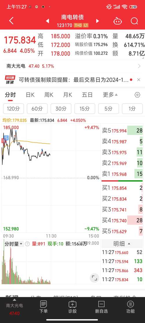 $南电转债(SZ123170)$这上串下跳的还真不太好做趋势啊,忙活一上午才一个多点