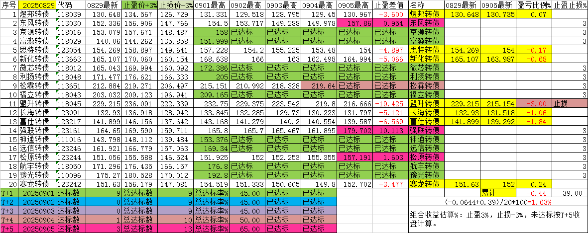 尾盘可转债(短线),每日尾盘14:40后,通过选债公式自动选择一批可转债标的,一周内大于3%收益的概率(五个交易日,以最高价计算)。盘中采用其他方式公布,本平台栏目不便及时发帖。为了计算方便,盘后以当日收盘价作为计算初始数据。 #稀土价值重估!行业迎戴维斯双击##卫星通信将成万亿级市场!如何掘金?##中芯国际H1净利增近40%!如何解读?#...