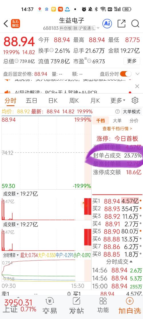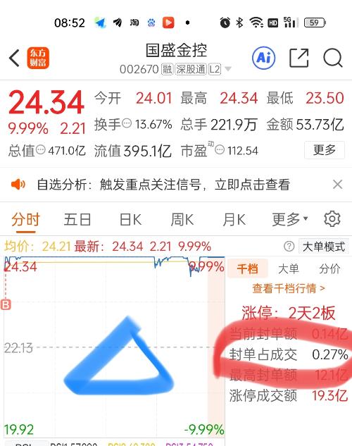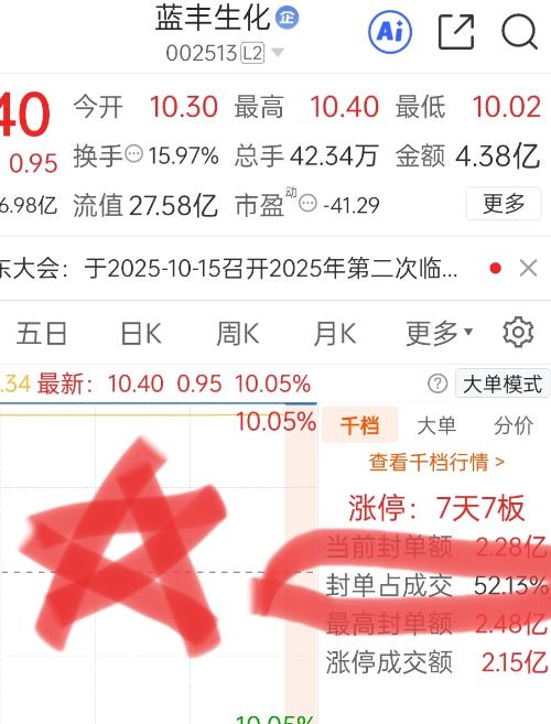 $崇达转2(SZ128131)$ 很多时候,我们追高打板,或者盘中冲高封板,碰到当天涨停板的机会很多。但很多人不知道,是该拿?还是该卖? 小路今天浅谈一下个人的浅溥认知,不喜勿喷!不同频者谢绝评论,抬扛者请绕道而行!! 1.涨停当天封单占成比值如果大于10%以上,甚至达50%以上,第二天大概率是会连板,你拿着就行。(除非主力大批出货)。例如蓝丰生化,9月30日封单占成交比值52.13%,那么当天可...
