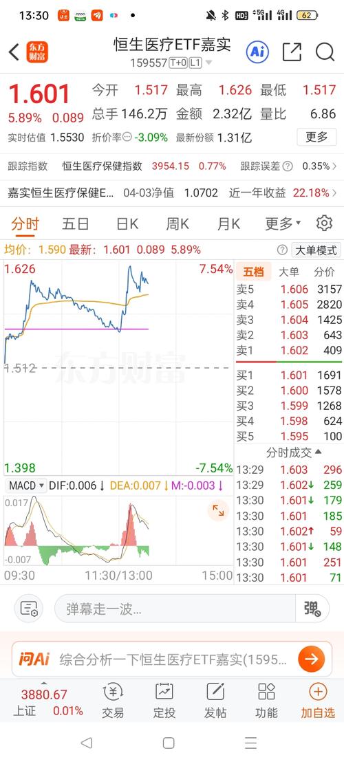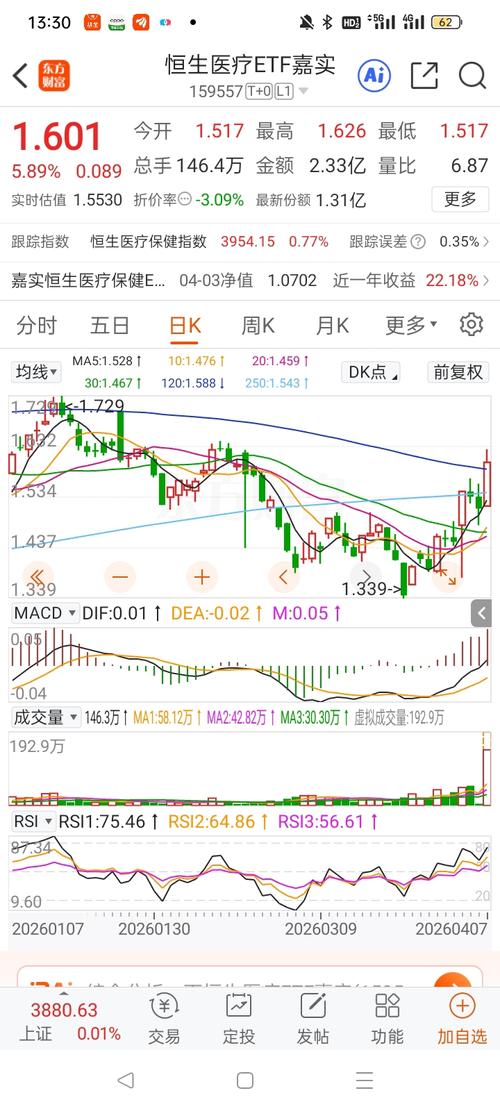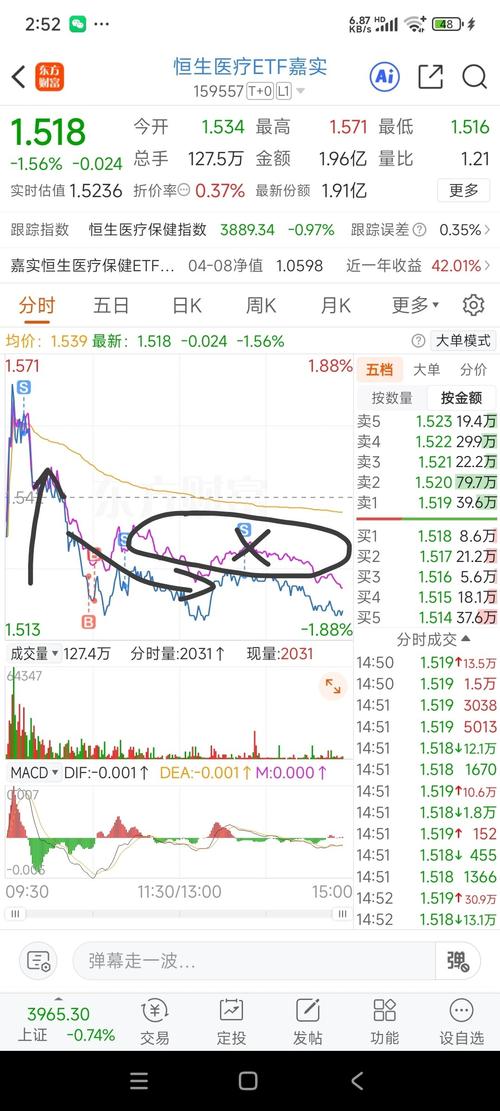 $恒生医疗ETF嘉实(SZ159557)$ (085)昨日搏反弹没搏到,想着反正右侧上涨留着就留着吧;刚刚这个卖点本来还不卖的,ETF选择今天飘红后面看那就让它飘吧、掉下来概率应该不大吧,又感觉上涨吃力,看了眼板块5分钟上面有压力、有点危险就出了,形态跟板块还不一样、涨的也比板块弱 没有后续预期,风控优先