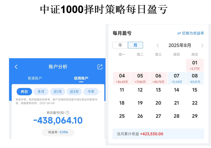 我主打的是真实、量化、可验证。行情再乱,总有策略能盈利(择时策略+趋势策略);市场再差,总有纪律(止损止盈)保命。关注我!用真金白银展示震荡市生存法则,每天下午2点不见不散! 高频场内:择时“温度计”策略 上周五吃了口大面,哈哈。但是目前仍盈利42.4万,今天行情重新席卷全来,应该能吃口大肉。 我这套择时“温度计”策略的优越性就在于,行情回调及时降温,行情到来及时升温,紧跟趋势,稳稳地捡西瓜丢芝麻...