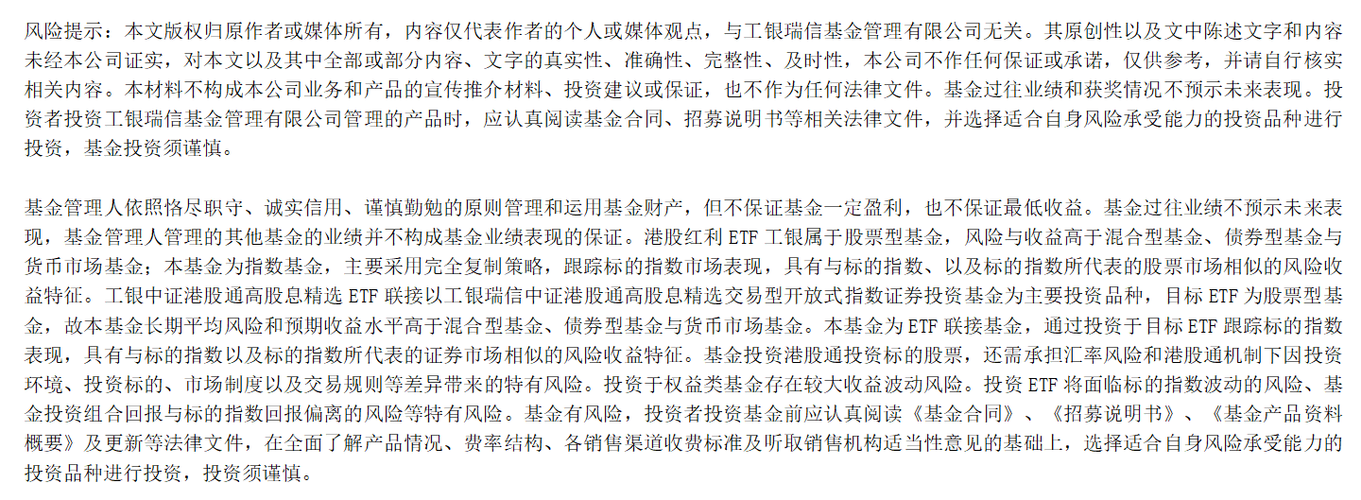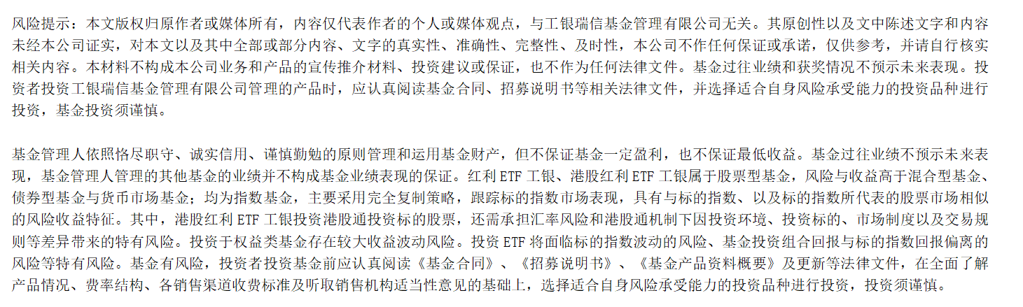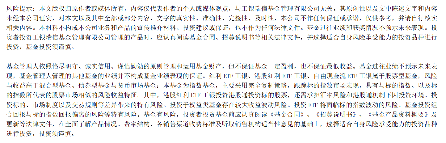 在无风险收益走低及不确定性增加的当下,投资者日益关注能够穿越周期的资产,对投资“获得感”的诉求明显。股息率稳定、分红高的红利资产以及拥有较强自由现金流的优质企业,愈发受到青睐。在此背景下,工银瑞信基金依托深耕指数投资的专业积淀,持续完善指数产品线,目前已布局了覆盖A股核心红利、港股高股息以及创新自由现金流策略的多只ETF产品,致力于为投资者提供一站式的普惠型红利投资解决方案,助力投资者在市场中行稳...