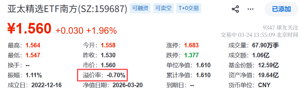 场内溢价ETF千万别碰,抄底就是接盘,亚太精选ETF南方(SZ159687)反向折价,这种稀缺机会,错过很难再遇到#特朗普称与伊朗高官谈判#
