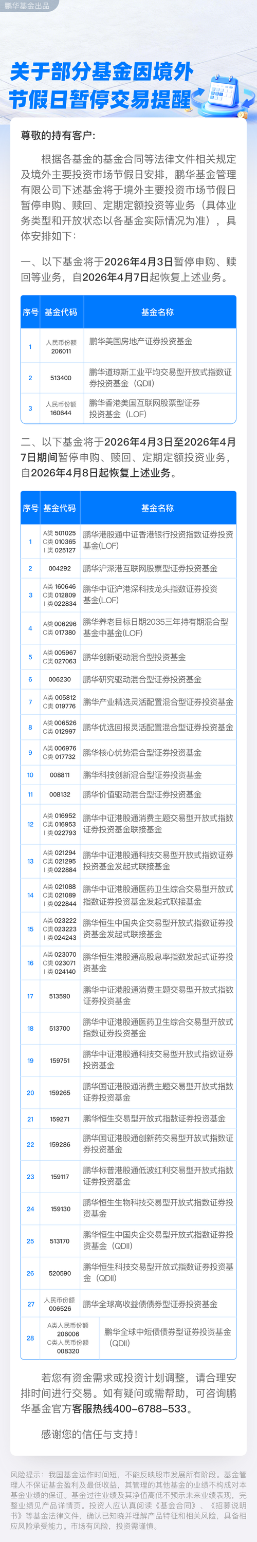 关于部分基金因境外节假日暂停交易提醒