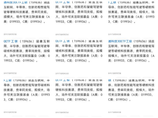 准备开始定投了,港股通科技30ETF工银(159636)涵盖互联网、半导体、创新药和智能驾驶等硬核科技赛道,费率同类低,规模大,场外可关注联接基金(A类:019933,C类:019934)。